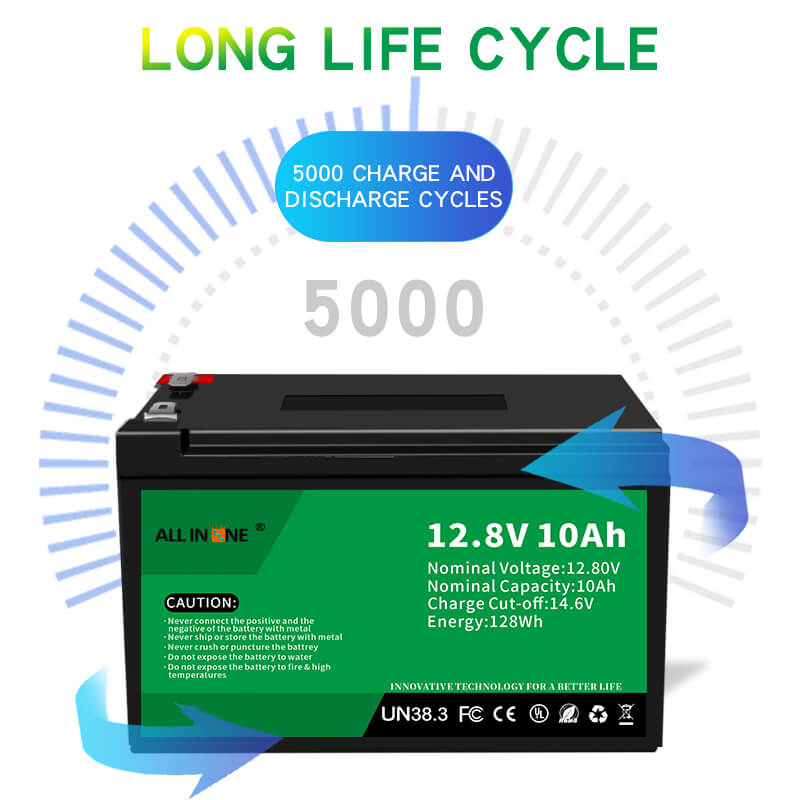Ši 12,8 V 10 Ah LFP baterija gali puikiai pakeisti AGM/GEL akumuliatorių. ALLIN ONE taip pat siūlo individualias, skirtingos talpos, matmenų ir funkcijų baterijas pagal kliento reikalavimus.