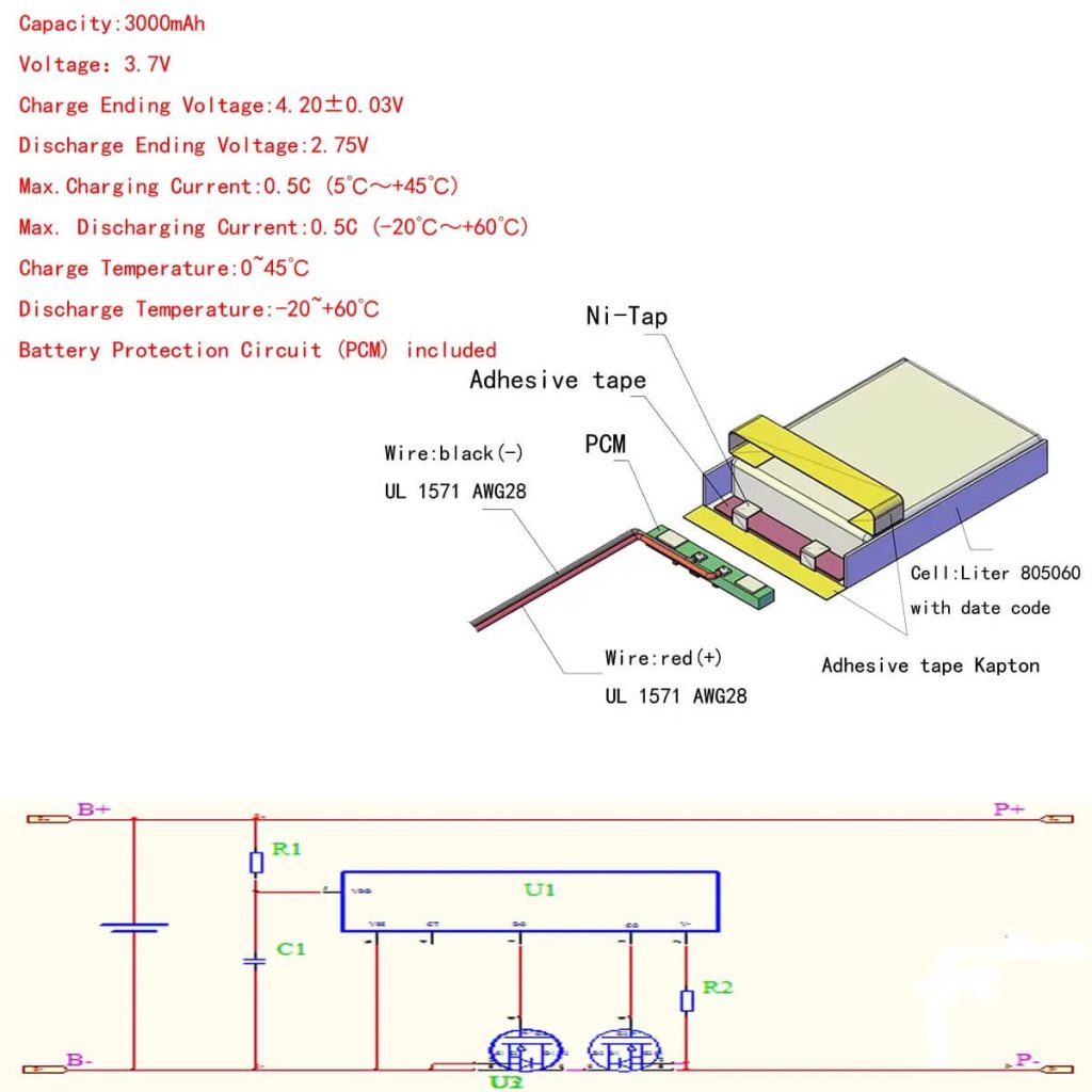 | Talpa: | 3000 mAh | Charge Voltage: | 3.7-4.2V |