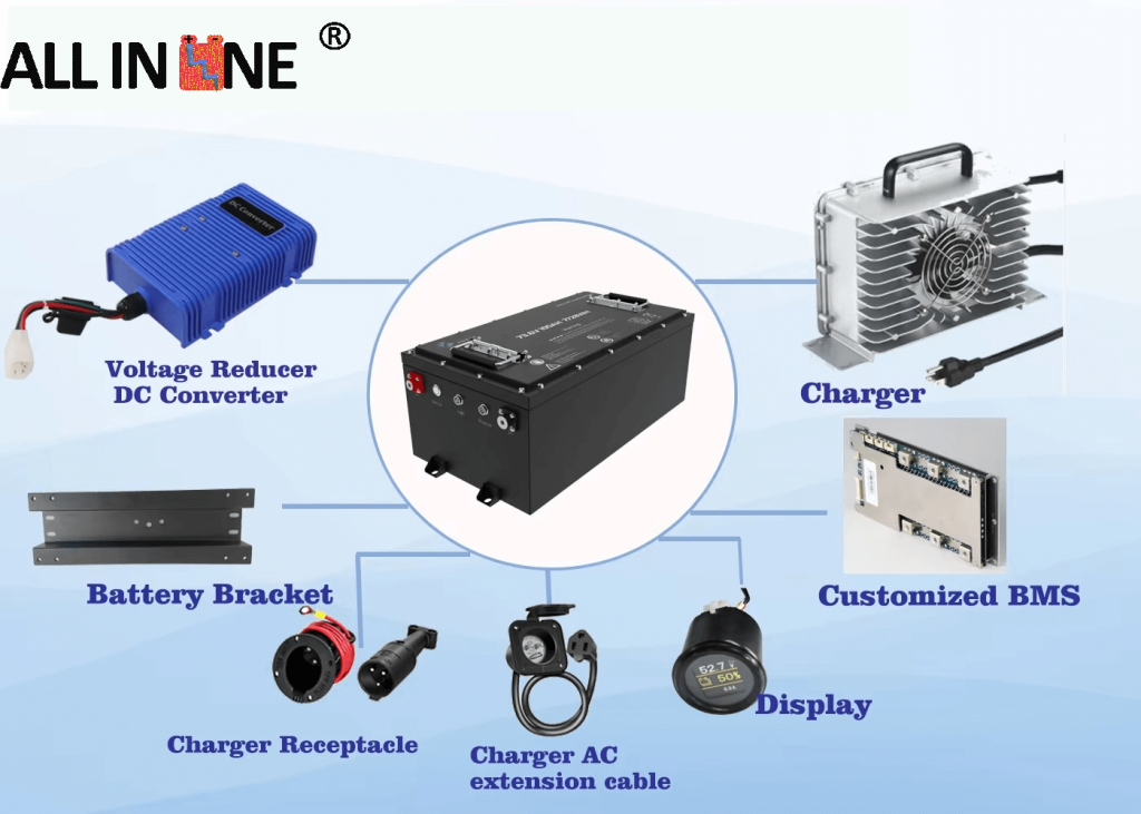 7) Galime pasiūlyti visą sistemos sprendimą, pvz., įkroviklį, įtampos reduktorių, laikiklį ir kt.