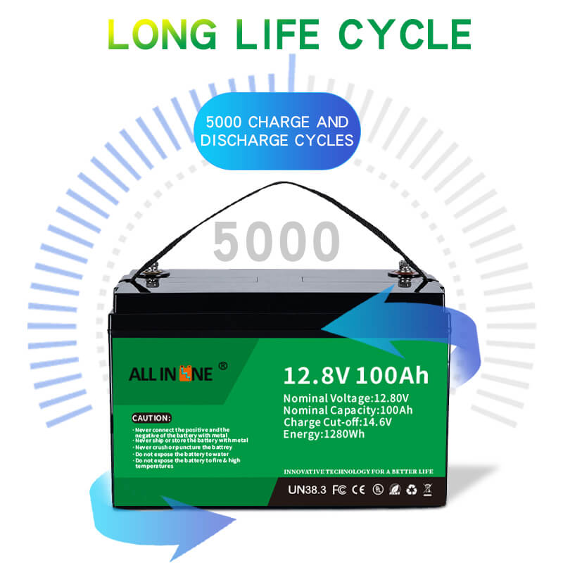 Ši 12,8 V 100 Ah LFP baterija gali puikiai pakeisti AGM/GEL akumuliatorių. „ALL IN ONE“ taip pat siūlo individualias, skirtingos talpos, matmenų ir funkcijų baterijas pagal konkrečius kliento reikalavimus.