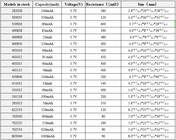 produkto pavadinimas | 581013 3,7 V 50 mAh polimero ličio baterija | Pastaba | |