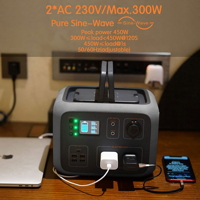 500Wh nešiojamos generatoriaus elektrinės maitinimo šaltinis su gana 300W DC / AC keitikliu, DC / AC / USB išėjimais kelionėms po kempingą