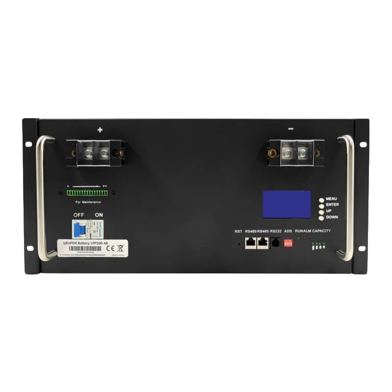Ši 48V 200Ah LFP akumuliatorių sistema turi įmontuotą BMS ir nerūdijančio plieno dėžutę, nudažytą juodai arba baltai.