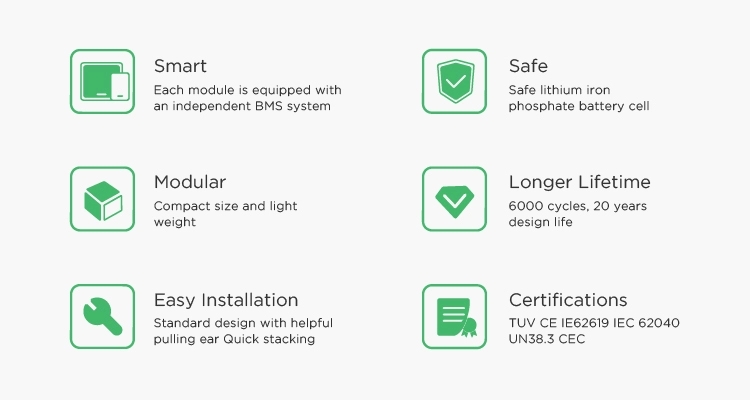 Sertifikatas ir saugos standartas | Akredituota TUV / CE / EN62619 / IEC62040 / UN38.3 / CEC | |