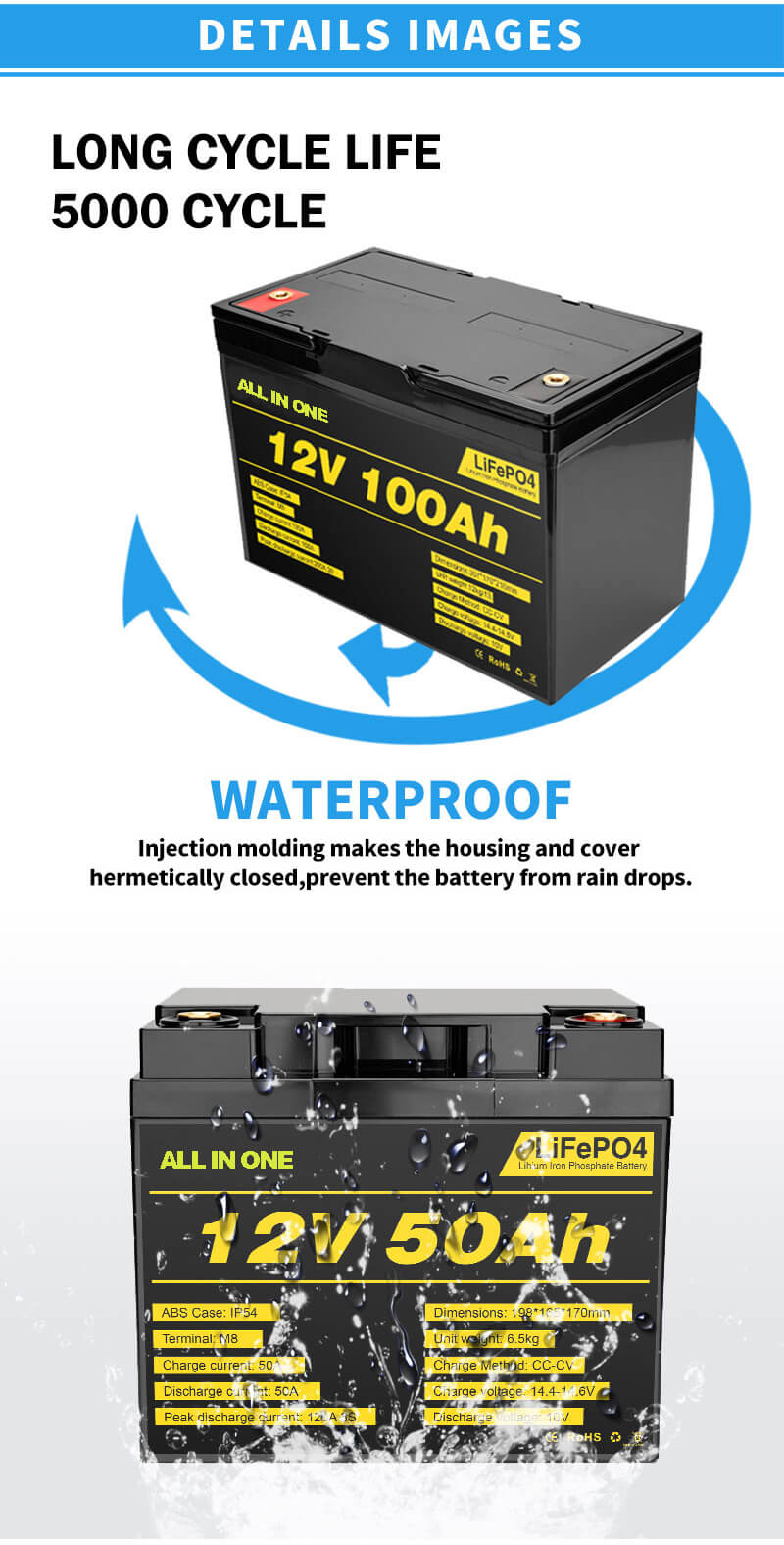 ♦ Aukščiausias saugumas: ličio geležies fosfato chemija pašalina sprogimo ar degimo riziką dėl didelio smūgio perkrovos ar trumpojo jungimo.