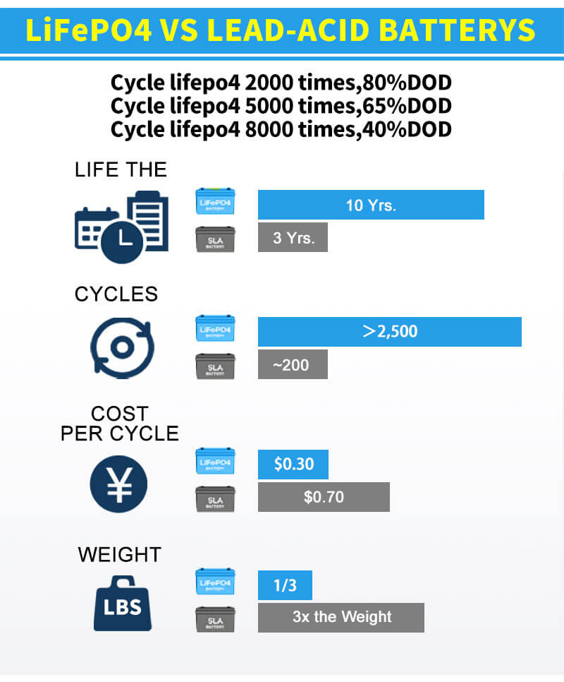 ♦ Ilgesnis ciklo tarnavimo laikas: iki 20 kartų ilgesnis ciklo tarnavimo laikas ir penkis kartus ilgesnis plūduriuojančio / kalendorinio naudojimo laikas nei švino rūgšties akumuliatorius. Tai padės sumažinti pakeitimo išlaidas ir sumažinti bendras nuosavybės išlaidas.